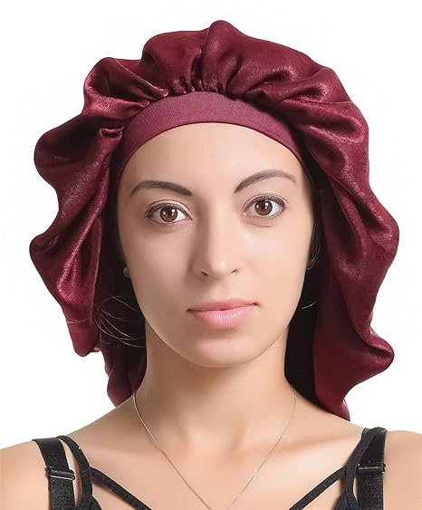 Extra Large Satin Bonnet Silk Sleep Cap Luxurious Fabricpremium Elastic Band https://www.amazon.com/Satin-Silk-Bonnet-Sleep-Cap/dp/B07MYQL3SY
