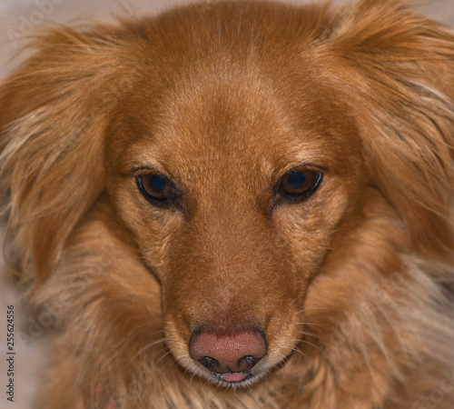 Detailed Close Up Of The Face Of A Small Red Long Haired https://stock.adobe.com/images/detailed-close-up-of-the-face-of-a-small-red-long-haired-mixed-breed-dog-with-the-tip-of-his-tongue-sticking-out/255624556