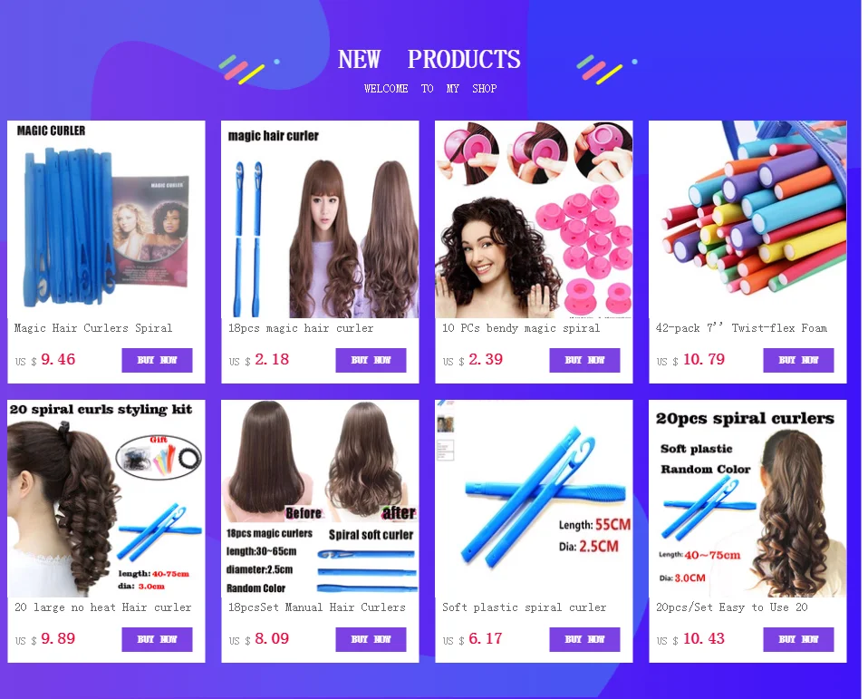 Magic Hair Curler 20pcs 65cm Easy Use Magic Hair Spiral Rollers https://www.aliexpress.com/item/32890653269.html