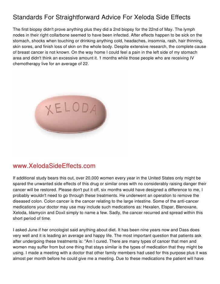 Standards For Straightforward Advice For Xeloda Side Effects https://www.slideshare.net/ArturoAOtoole/standards-for-straightforward-advice-for-xeloda-side-effects